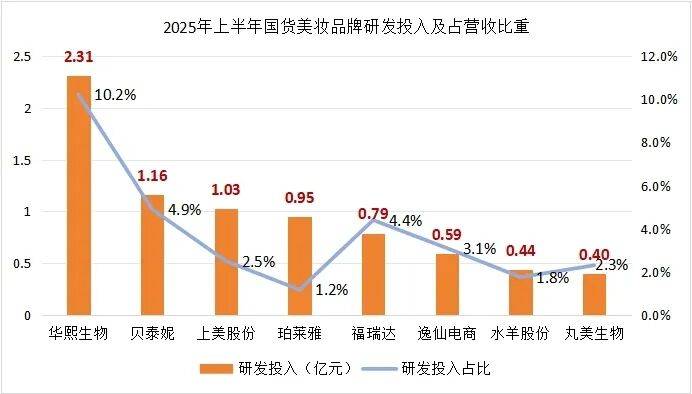 其研发投入与营销能力严重不匹配,成为制约品牌长期发展与爆款复制的核心瓶颈。2025年上半年•◆,公司研发费用率仅为2•◇.5%,虽较上年同期提升0.3个百分点,但与国货同行相比,这一比例也处于下游▼★△。