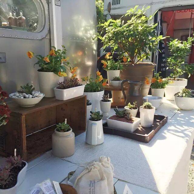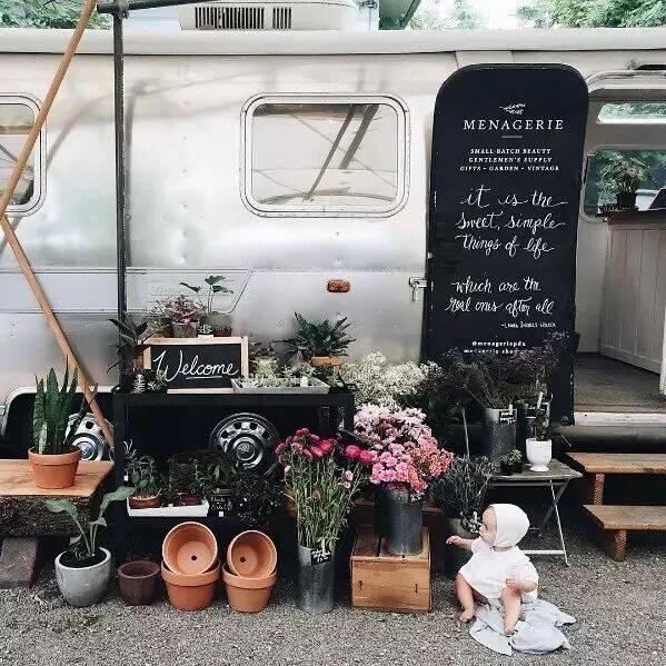 其实,从内部的陈设看起来似乎与其他花店、香氛店没有什么不同的。然而,凯西的这家小店令人惊艳的是她把花店、杂货铺的形式开在一辆由1979年由中古的Airstream露营车改造的车里。