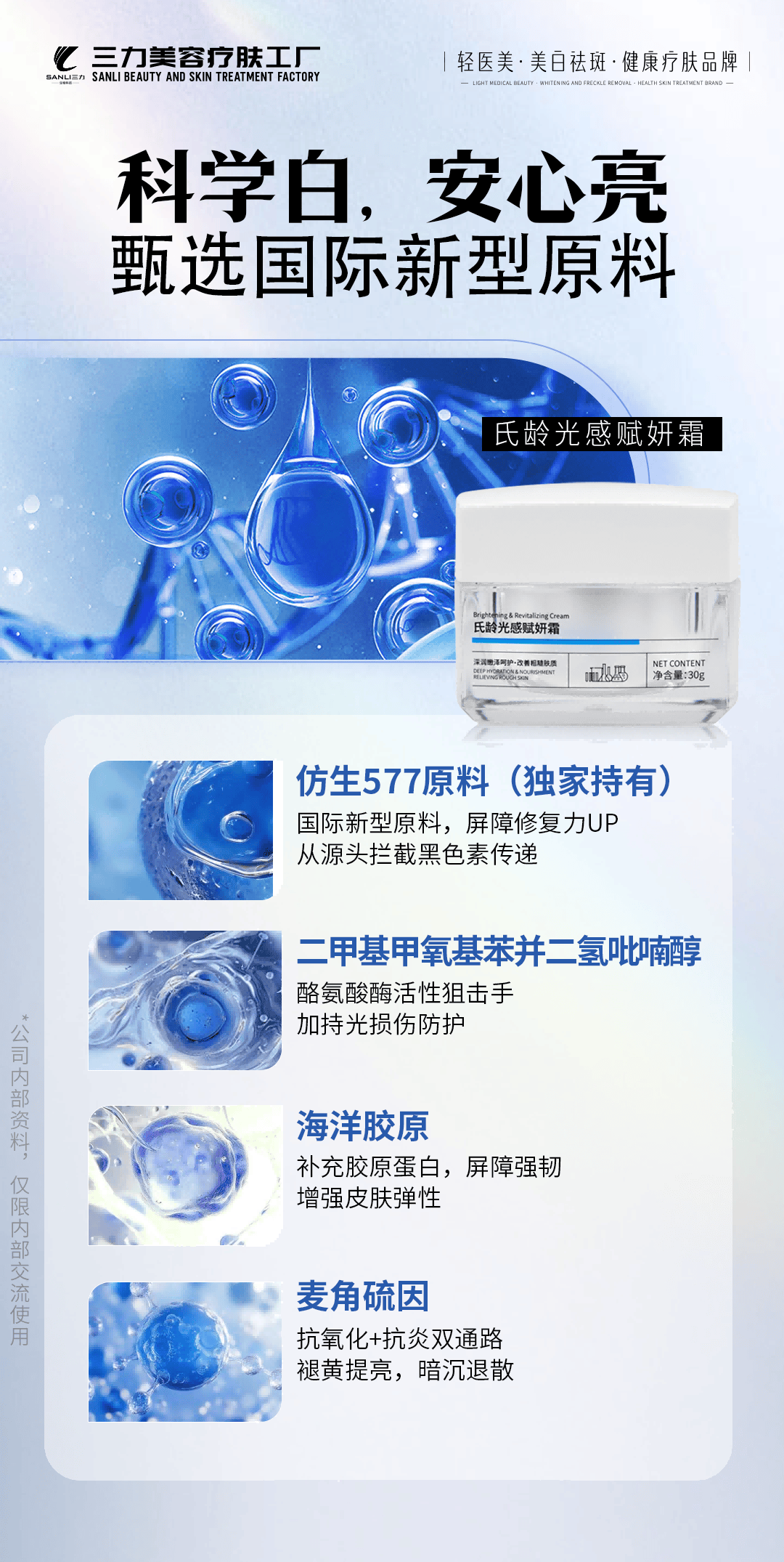 三力工厂的核心武器库包括自有品牌矩阵、OEM/ODM代工服务体系以及海外贸易全链解决方案。其专利技术体系涵盖了60多项核心专利,如海洋蛋白修复专利、疤痕妊娠纹修复技术等,确保产品的高效性和安全性。此外,三力工厂拥有3000余个市场验证成熟配方,依托德国自动化乳化设备与10万级GMPC洁净车间,实现了从研发到生产的全流程可控。